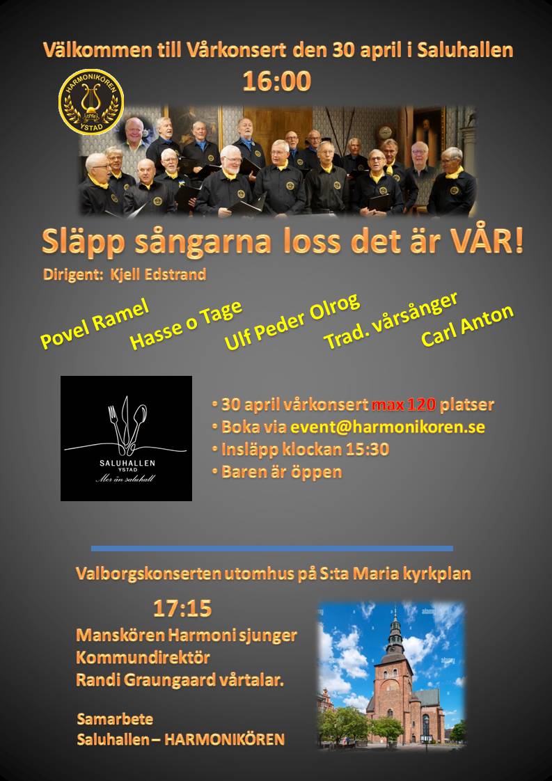 ¤ VÅRKONSERT 30 april i SALUHALLEN Kl : 16:00 insläpp 15:30